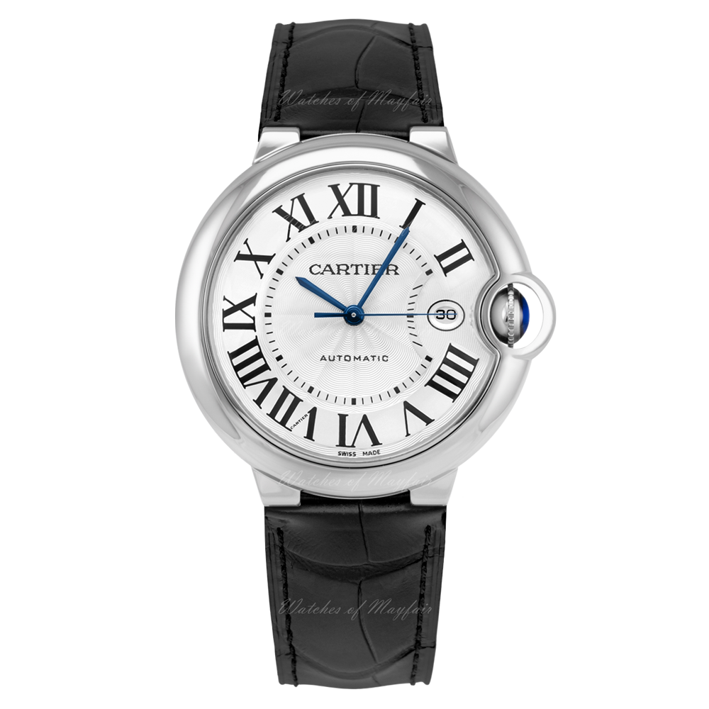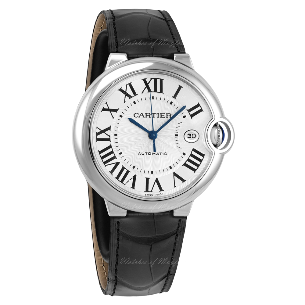 Cartier Ballon Bleu de Cartier 42 mm watch. Model reference: WSBB0026. Steel case. Silver dial. Automatic movement. Black alligator leather strap with stell folding clasp. Swiss made. Watch comes in original packaging, with set of documents and 2 years warranty. At Watches of Mayfair we offer new authentic watches at the best prices.