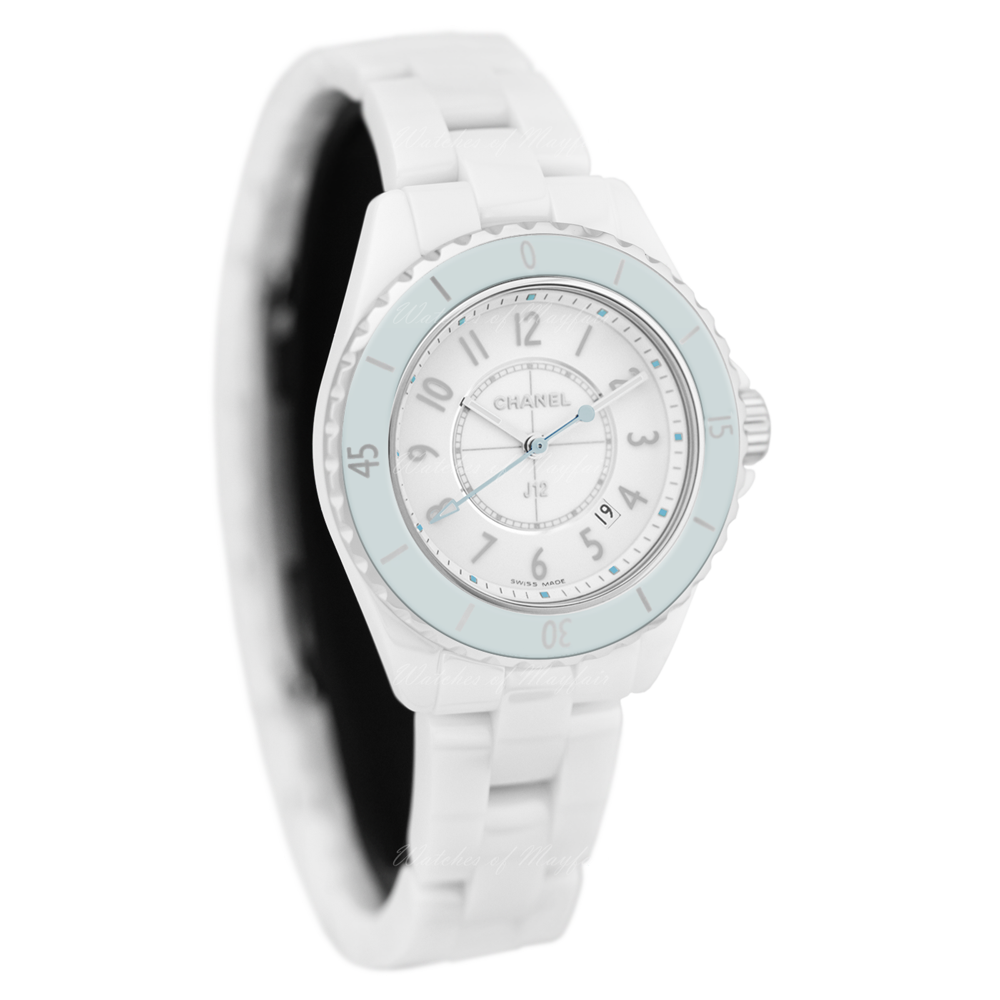 Chanel J12 Automatic 33 mm watch. Model reference: H4464. White ceramic case. White dial. Quartz movement. White ceramic bracelet. This watch comes in original packaging with set of documents and 5 years warranty. At Watches of Mayfair we offer new authentic watches at the best prices.